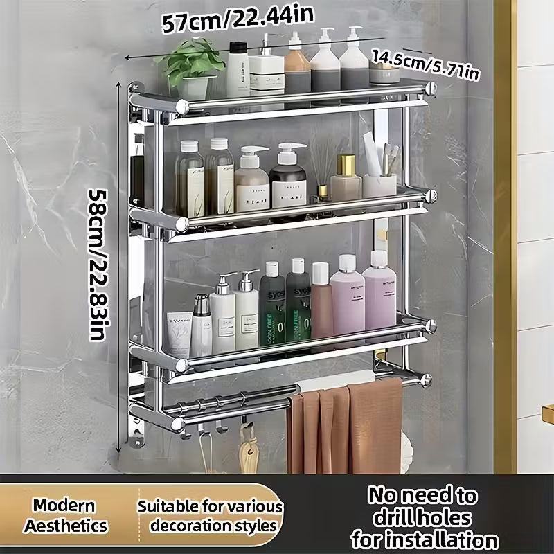 inox 304 رفّ الحمام العصري 3 طبقات مصنوع من